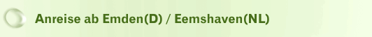 Folgen Sie der REEDESTRASSE vom Hafen in Richtung Ortsmitte. Nach ca. 5km passieren Sie den Ortseingang Borkum und kommen an eine Kreuzung (Lidl). Biegen Sie dort rechts in die OSTFRIESENSTRASSE ein und folgen Sie dieser. Nehmen Sie dann die zweite Abzweigung links in die WILHELM-FELDHOFF-STRASSE. Von dort biegen Sie nach wenigen Metern rechts in die DE DREEIHAUK ein und folgen dieser bis zur Hausnummer 9.
